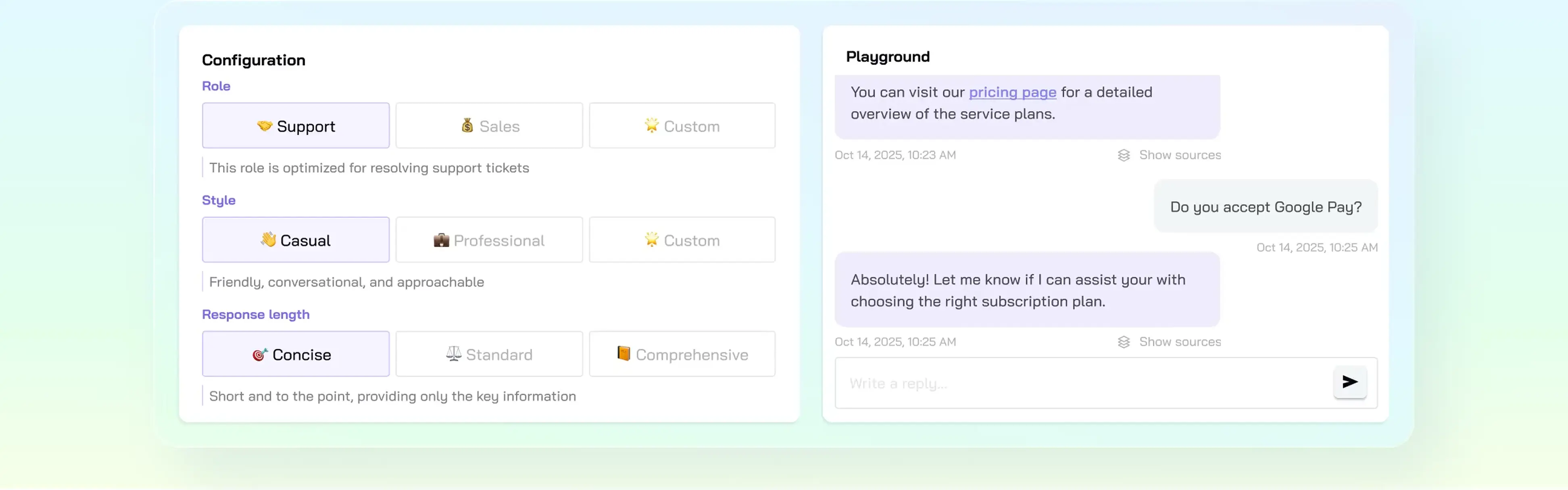 Tailor the AI’s tone and behavior to suit your business, from customer-centric to sales-oriented.