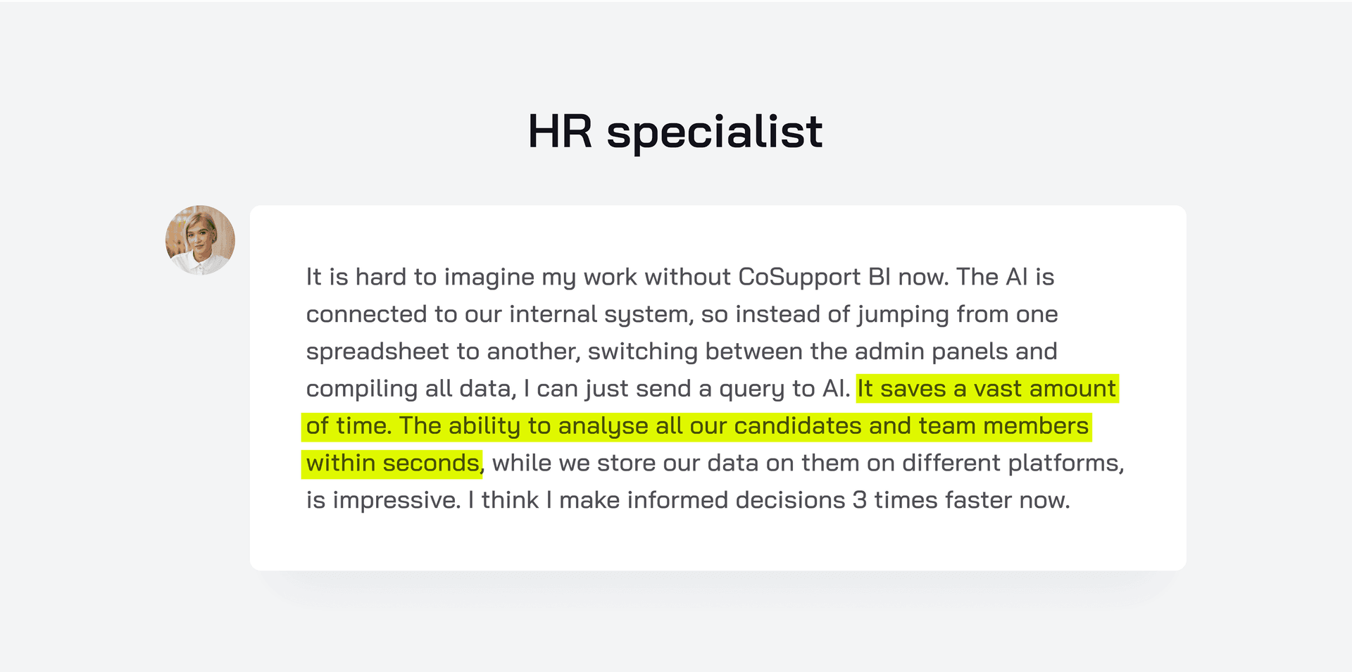 The result: an HR specialist makes decisions about candidates three times faster: